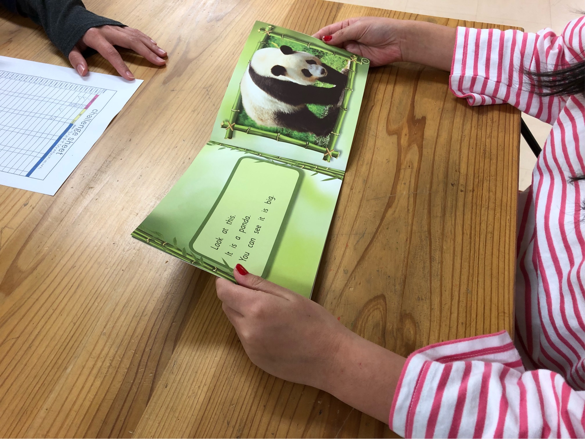 子供たちが読みたくなるような、きれいな挿絵や写真の載っている本が10冊以上。みんなどんどん読んでいます。わからない単語や発音は先生に少しだけ助けてもらって、全冊読破を目指しています。