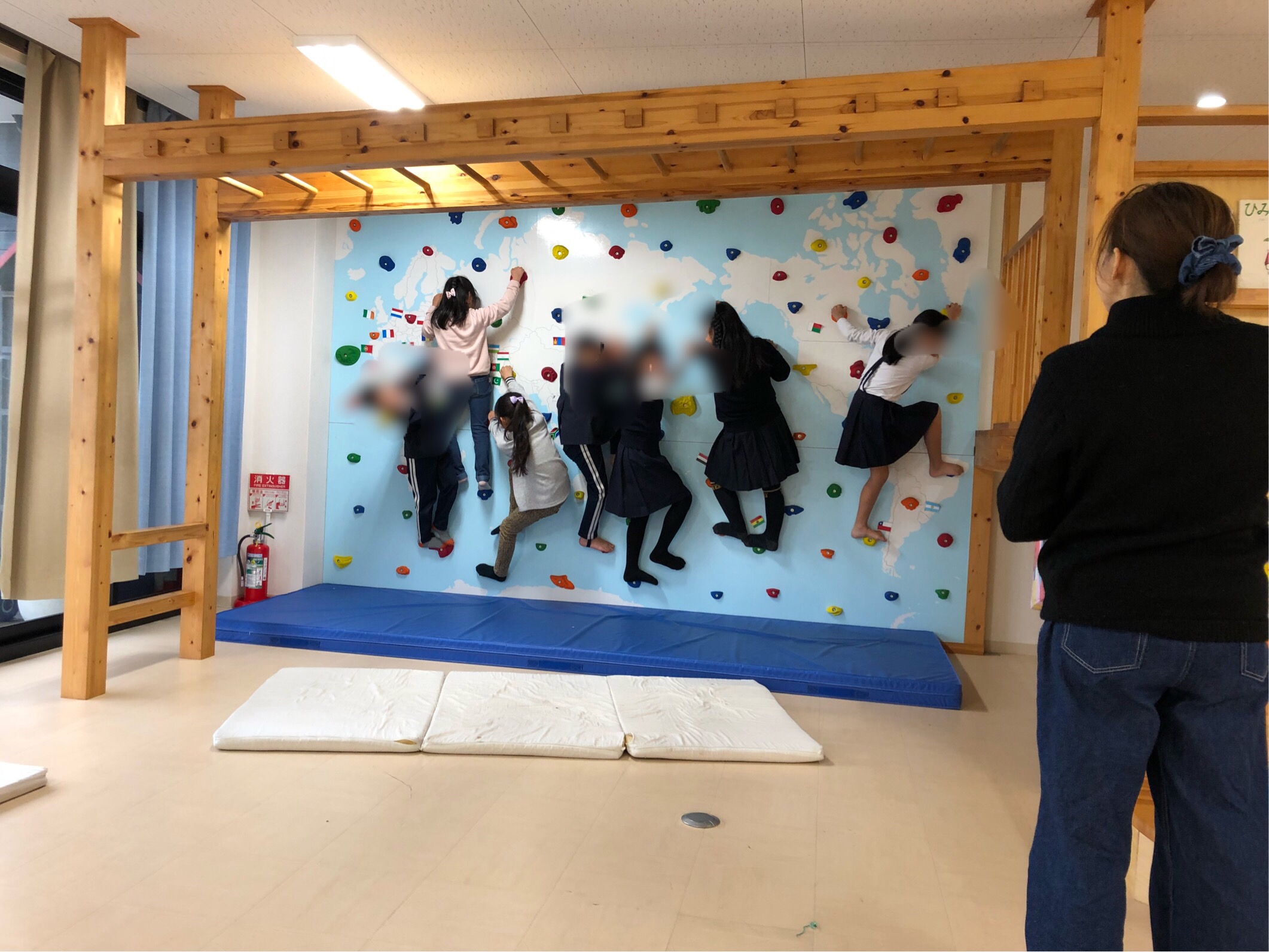 今日もみんな大好きボルタリングもただでは終わりません。スタートからゴール、10秒を目標に、しかも九九を言いながらと課題が多い(>_<)でも楽しい(*^_^*)